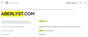 ЦБ РФ — AberLyst в ЧЁРНОМ СПИСКЕ