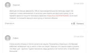 Любые инвестиции в AberLyst — это гарантированная потеря средств. Компания создана для обмана, а не для честного трейдинга. Не стоит рисковать деньгами и попадать в ловушку мошенников.
