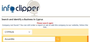 Реальность: в официальных базах Acuantlite отсутствует. Ни номеров, ни упоминаний. Адрес в Кипре (Leoforos Demokratias 35, Paphos 8028) не подтверждается геолокацией или реестрами.