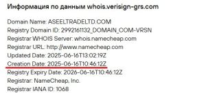 Домен aseeltradeltd.com зарегистрирован в июне 2025 года. По состоянию на февраль 2026 года проекту менее года.