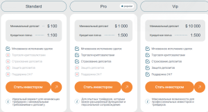 - VIP — от 10 000 долларов, плечо 1:500