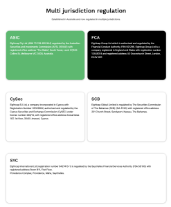 Речь идёт о якобы действующих лицензиях соответствующих юридических лиц. В теории наличие регулирования со стороны таких органов, как Australian Securities and Investments Commission, Financial Conduct Authority и Cyprus Securities and Exchange Commission, должно означать строгий контроль, требования к капиталу и защиту клиентов.
