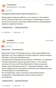 Отдельно пользователи подчёркивают, что спорные ситуации возникают именно в момент, когда речь идёт о выплате средств или распределении прибыли. В таких случаях процесс может затягиваться, а аргументация компании сводится к внутренним правилам, которые интерпретируются в одностороннем порядке.
