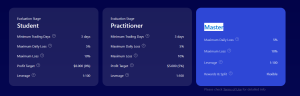 Размер доступного капитала варьируется от 5 000 до 100 000 долларов и зависит от выбранного плана.