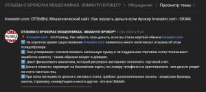 Все отзывы о inveseim.com — исключительно отрицательные: