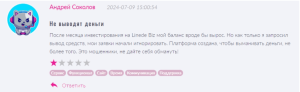 Независимые источники показывают, что большинство отзывов о Linede Biz негативные. Пользователи жалуются на невозможность вывести средства, блокировку аккаунтов и необходимость обращаться к юристам для возврата своих денег. -