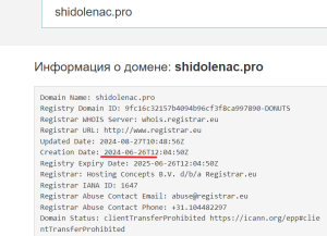 Фактическая дата регистрации домена — 2024 год (проверка через WHOIS).