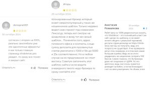 • Положительных отзывов от реальных людей в открытом доступе нет. Есть только шаблонные «всё отлично, вывел за 10 минут» с новых аккаунтов без скринов — 100 % купленные или боты.