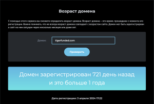 Домен tigerfunded.com был зарегистрирован 3 апреля 2024 года.