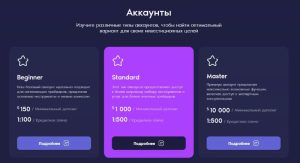 Beginner Самый доступный тариф, рассчитанный именно на новичков. Минимальное пополнение составляет всего 150 долларов. За эту сумму клиент получает кредитное плечо 1:100 и заявленные низкие комиссии.