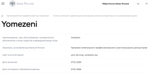 Yomezeni заявляет о статусе надёжного брокера, однако объективные данные указывают на отсутствие регуляции, прозрачности и подтверждённой истории работы.