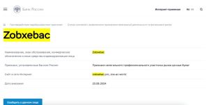 - 23 августа 2024 года Центральный банк России официально внёс Zobxebac в чёрный список нелегальных организаций (реестр на cbr.ru).