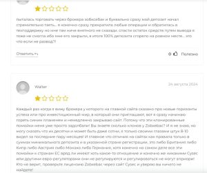 Отзывы о Zobxebac в большинстве своём резко негативные. Пользователи отмечают, что после пополнения баланса средства быстро исчезают, а любые попытки оформить вывод заканчиваются блокировкой аккаунта или бесконечными «проверками». Многие упоминают агрессивное давление менеджеров, которые настойчиво требуют пополнить счёт или даже оформить кредитные средства для «увеличения доходности».
